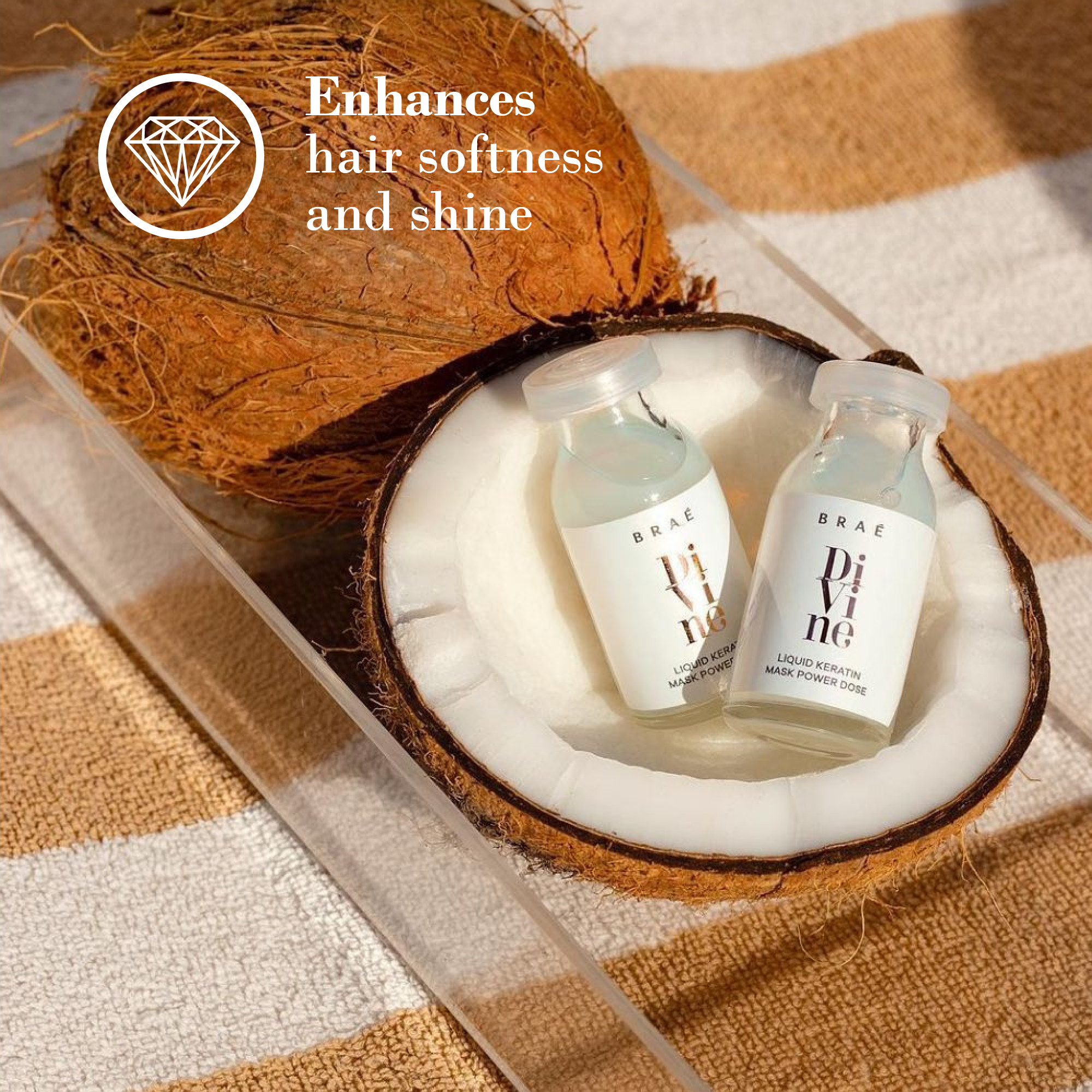 The DIVINE LINE is formulated to provide long-lasting, perfectly straight hair. It is made from a unique blend of plant extracts, coconut water, and coconut oil, carefully chosen to protect hair from humidity. This results in intensely silky, nourished, and completely frizz-free hair.
