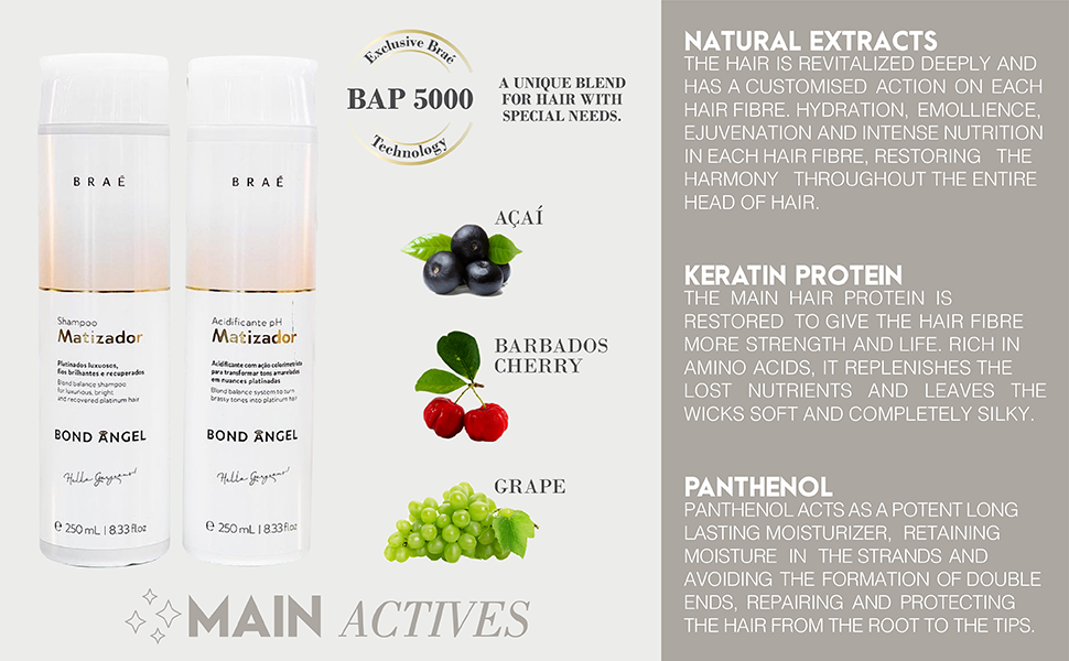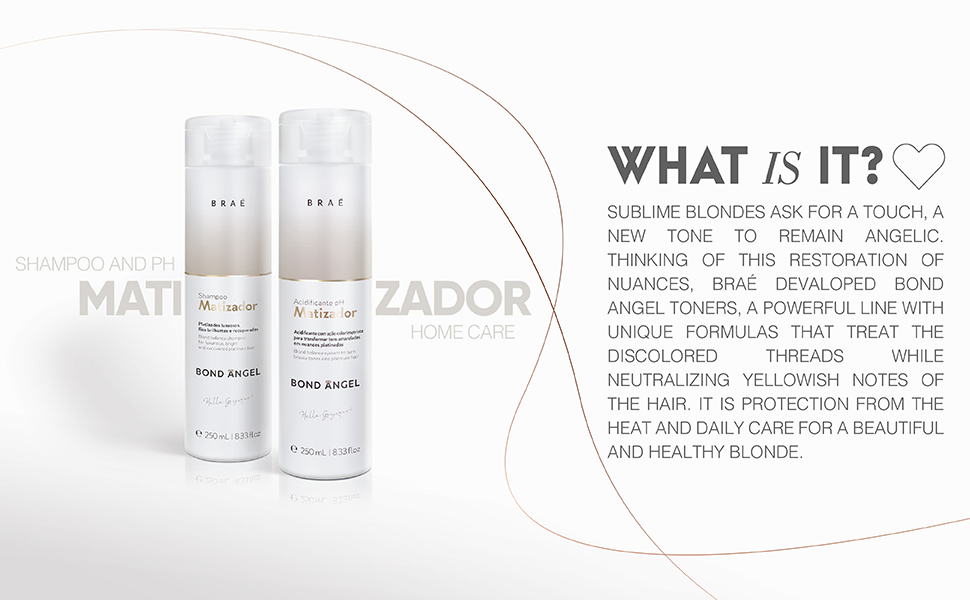 The hair of luxurious blondes requires special care. Thinking about this, BRAÉ has developed an exclusive line of toners. Bond Angel Blond Balance Matizador has unique formulas that effectively act on bleached strands to neutralize the yellow shade of the hair. The Blond hair care products maintain brightness and color, protect hair from exposure to temperatures, and make them healthy and beautiful.