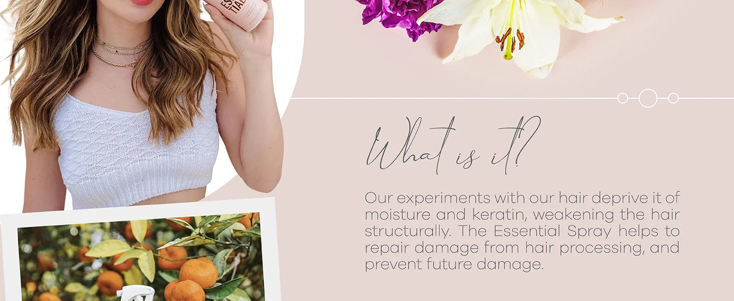 The product that is essential for your everyday life, that matches all types of hair, and still has various forms of use? This is it - Essential Spray.