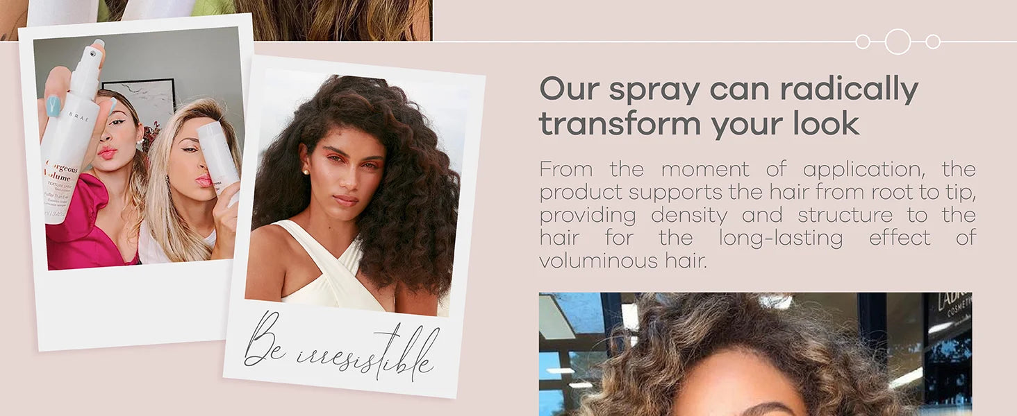 Use for fixing curls and waves in length and ends. For root volume, spray directly onto the scalp.