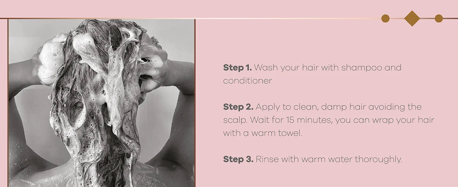 Apply the mask to clean and damp hair, starting at the ends. Gently massage at the roots of the hair. Leave on for 10 minutes and rinse well.